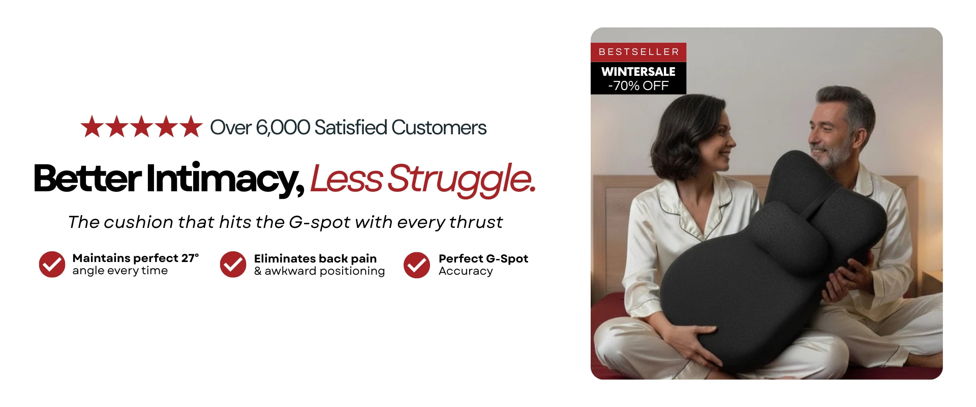 It’s a versatile ergonomic wellness product. It improves posture, relieves back pressure, maintains the perfect angle, and blends seamlessly into your home, without looking like an “intimate product.”